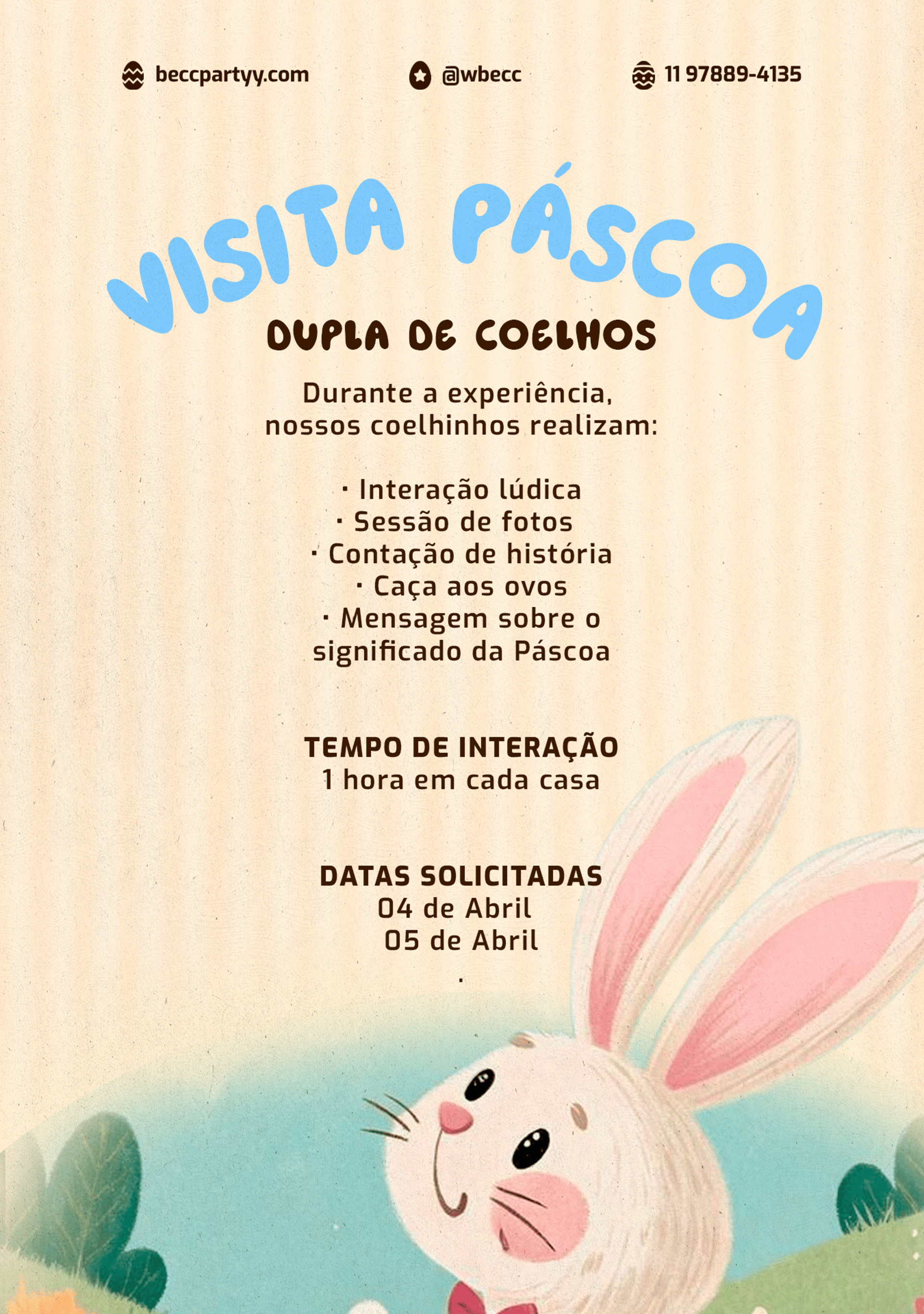 Surpreenda, emocione e transforme seu evento em uma experiência inesquecível com nossa dupla de coelhos!
